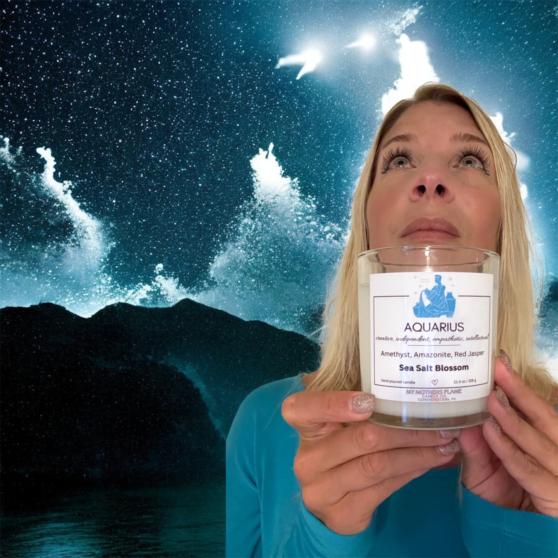 Our Aquarius Zodiac Candle is infused with visionary crystals and a refreshing sea salt blossom scent. Crafted to reflect Aquarius’s creative, independent, empathetic, and intellectual spirit. Let it inspire you to think big, dream boldly, and embrace your unique path.