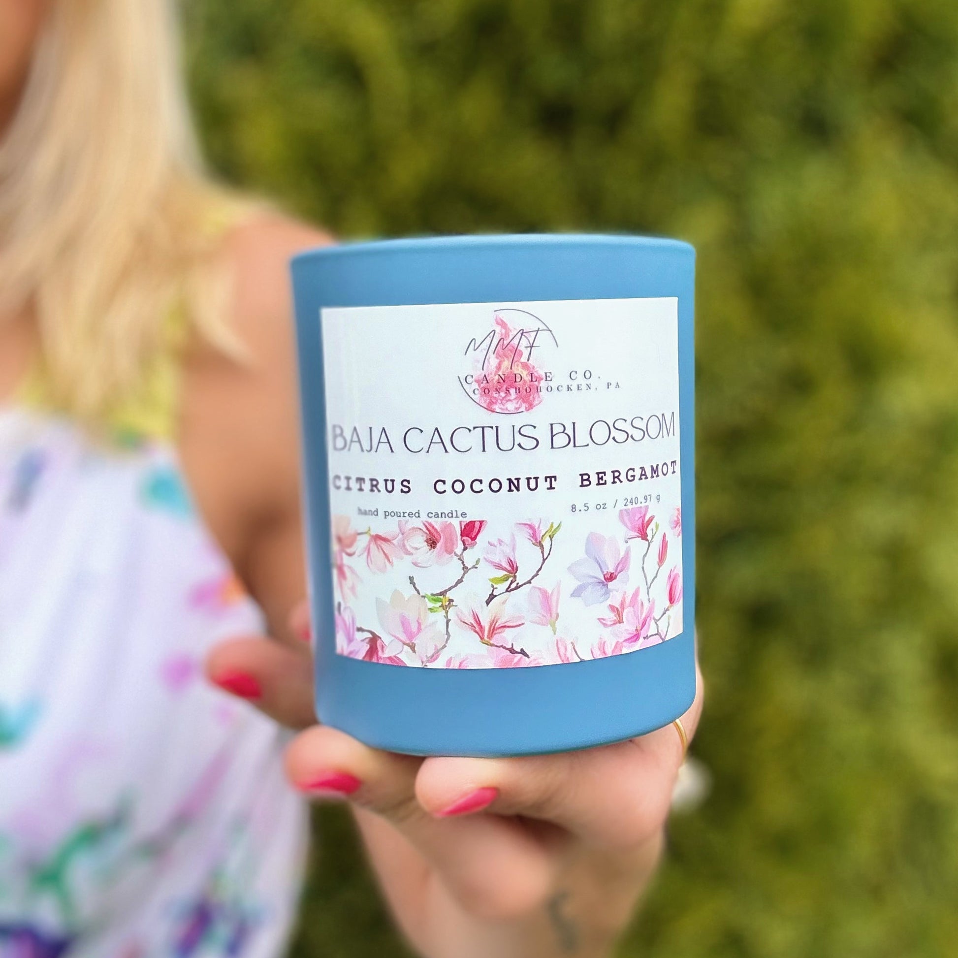 Introducing Baja Cactus Blossom, our hand-poured candle made from a premium para-soy wax blend. Infused with the refreshing, vibrant scent of cactus flowers and a touch of Bergamot, this candle captures the essence of the desert in full bloom.