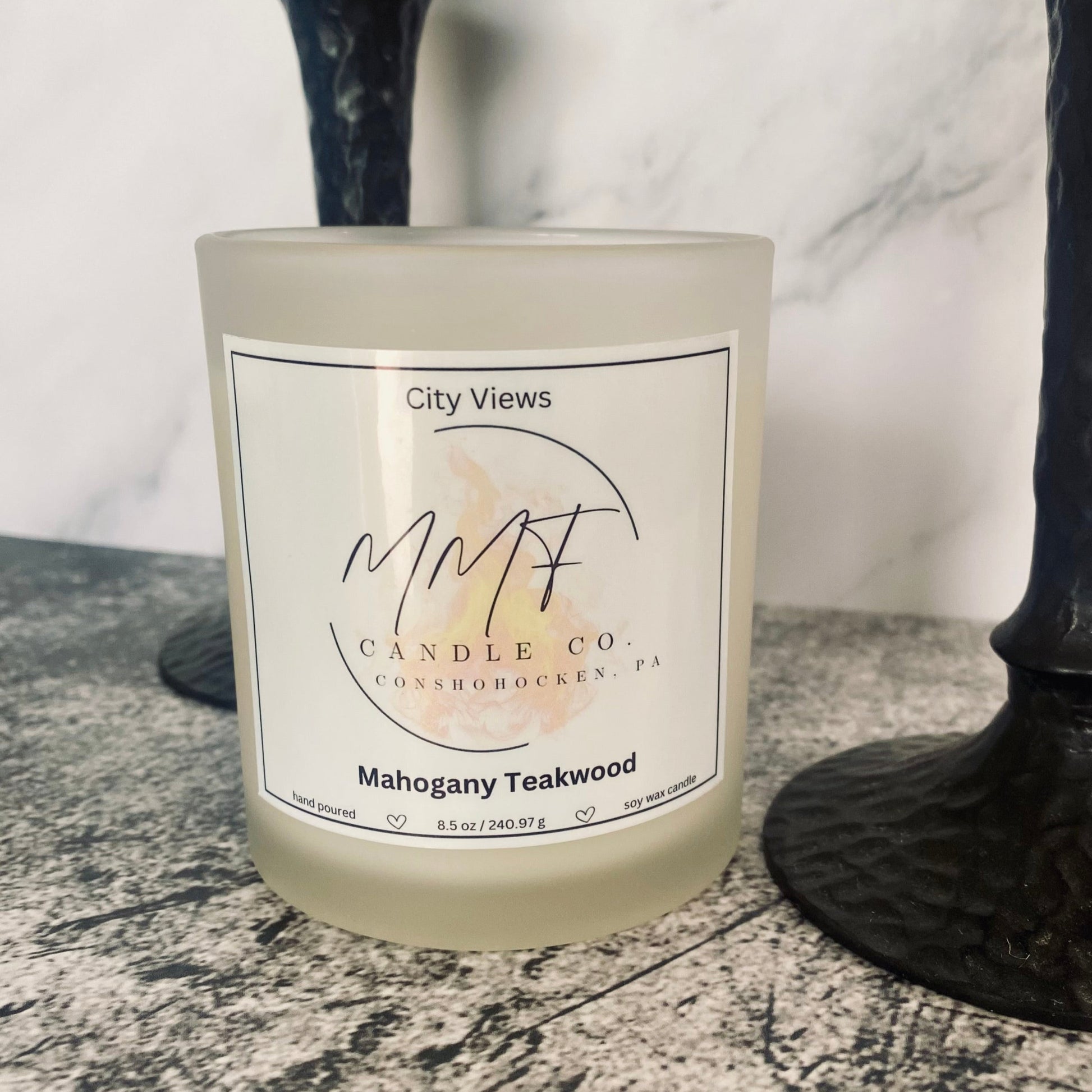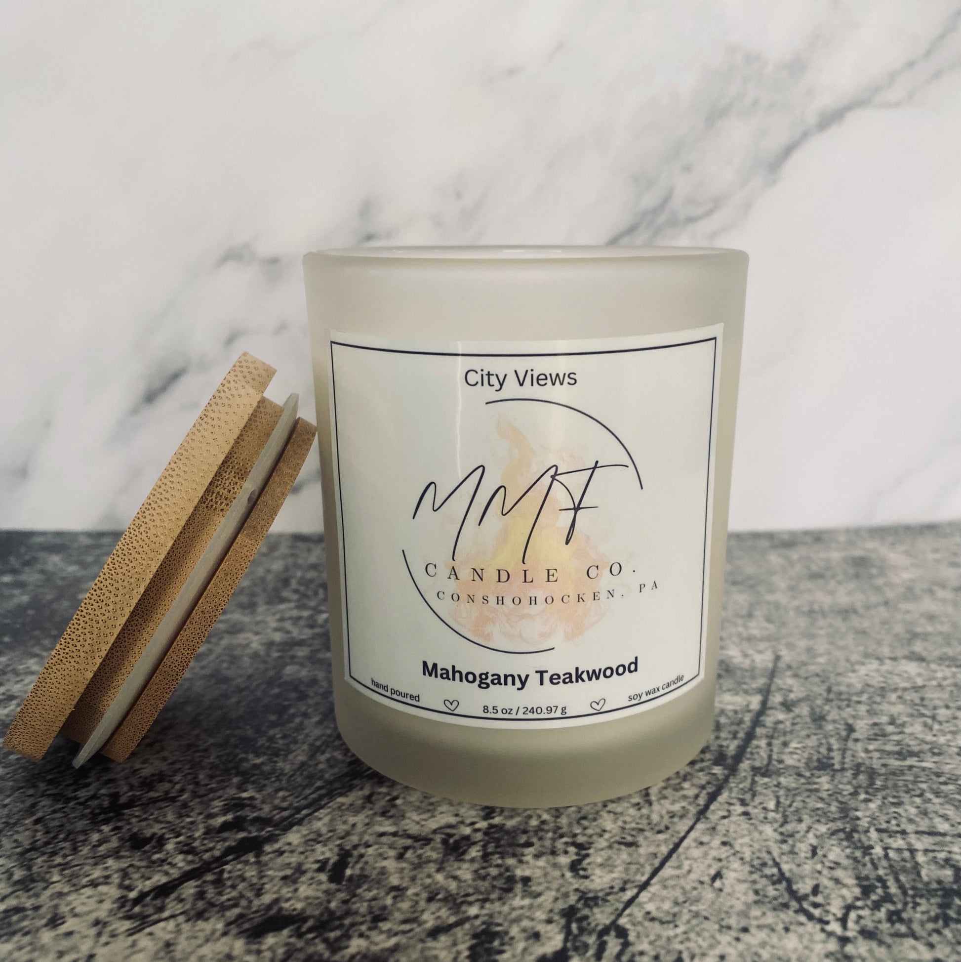 Introducing City Views, our hand-poured 100% soy candle with an eco-wick and the rich, sophisticated scent of Mahogany Teakwood.
