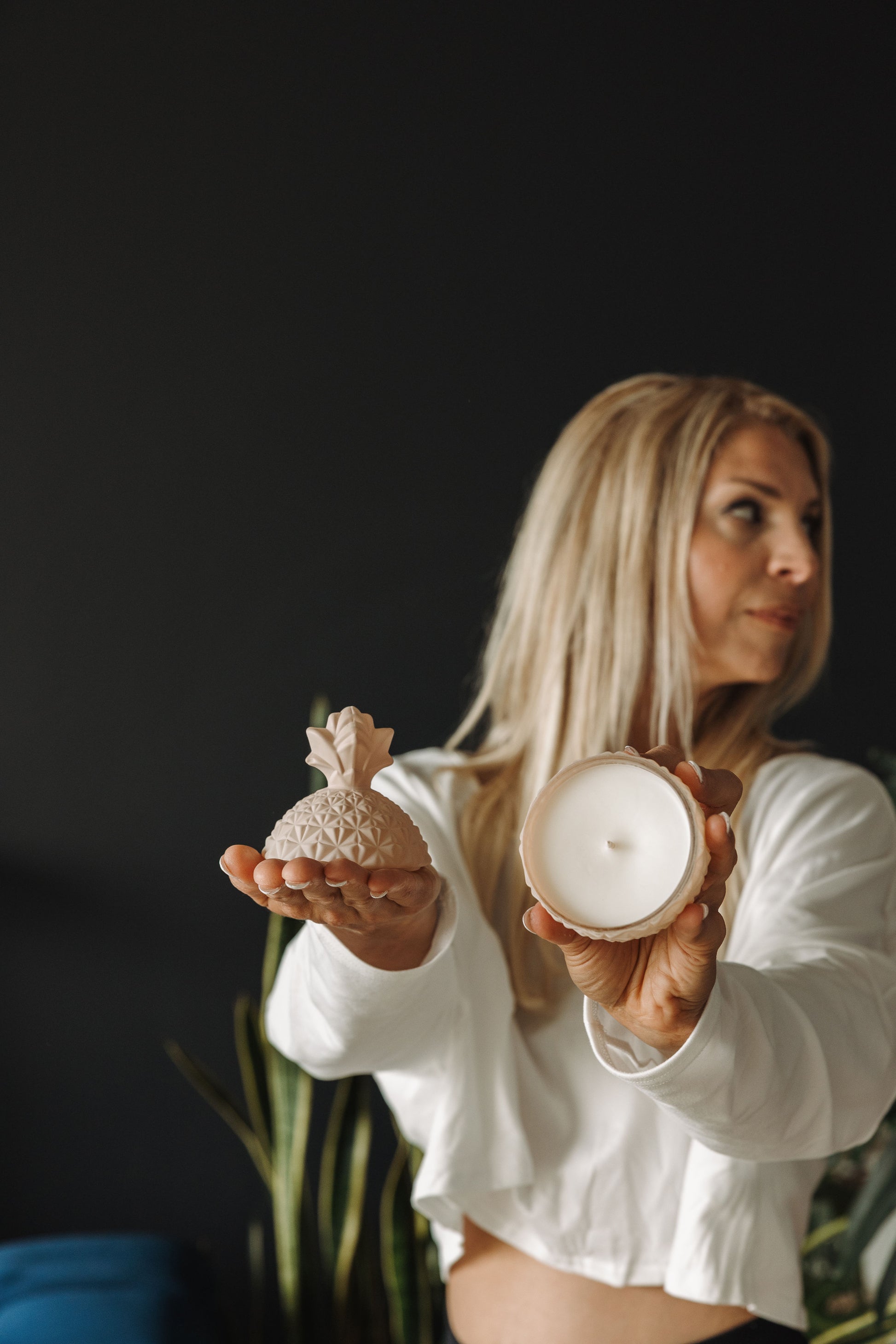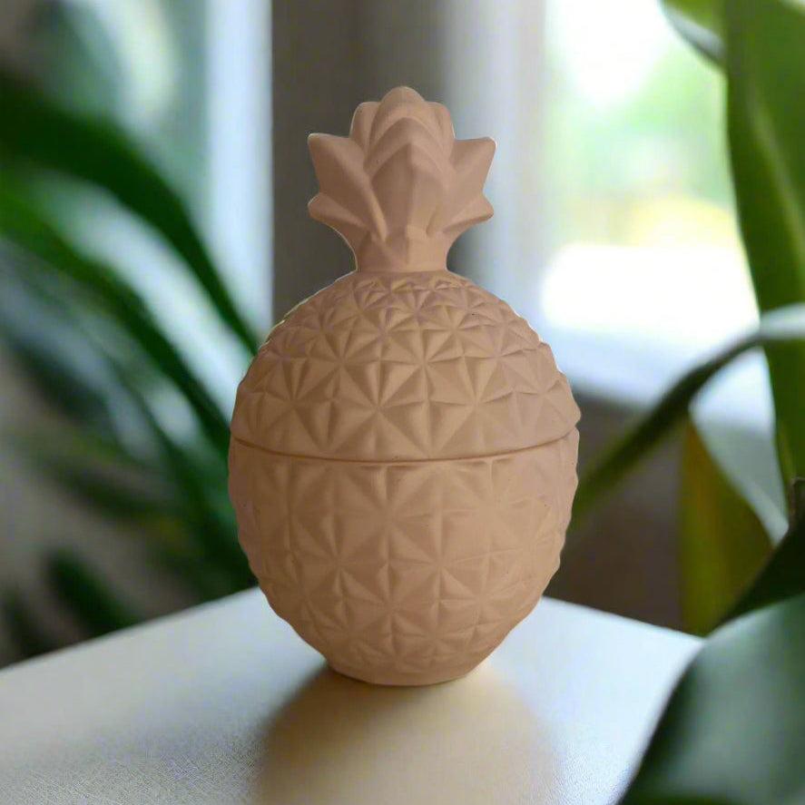 Introducing Ember Dreams, our indulgent hand poured para-soy blend candle featuring the enchanting Amethyst Aura fragrance. Housed in a beautifully crafted, coconut cream matte colored, pineapple shaped vessel.