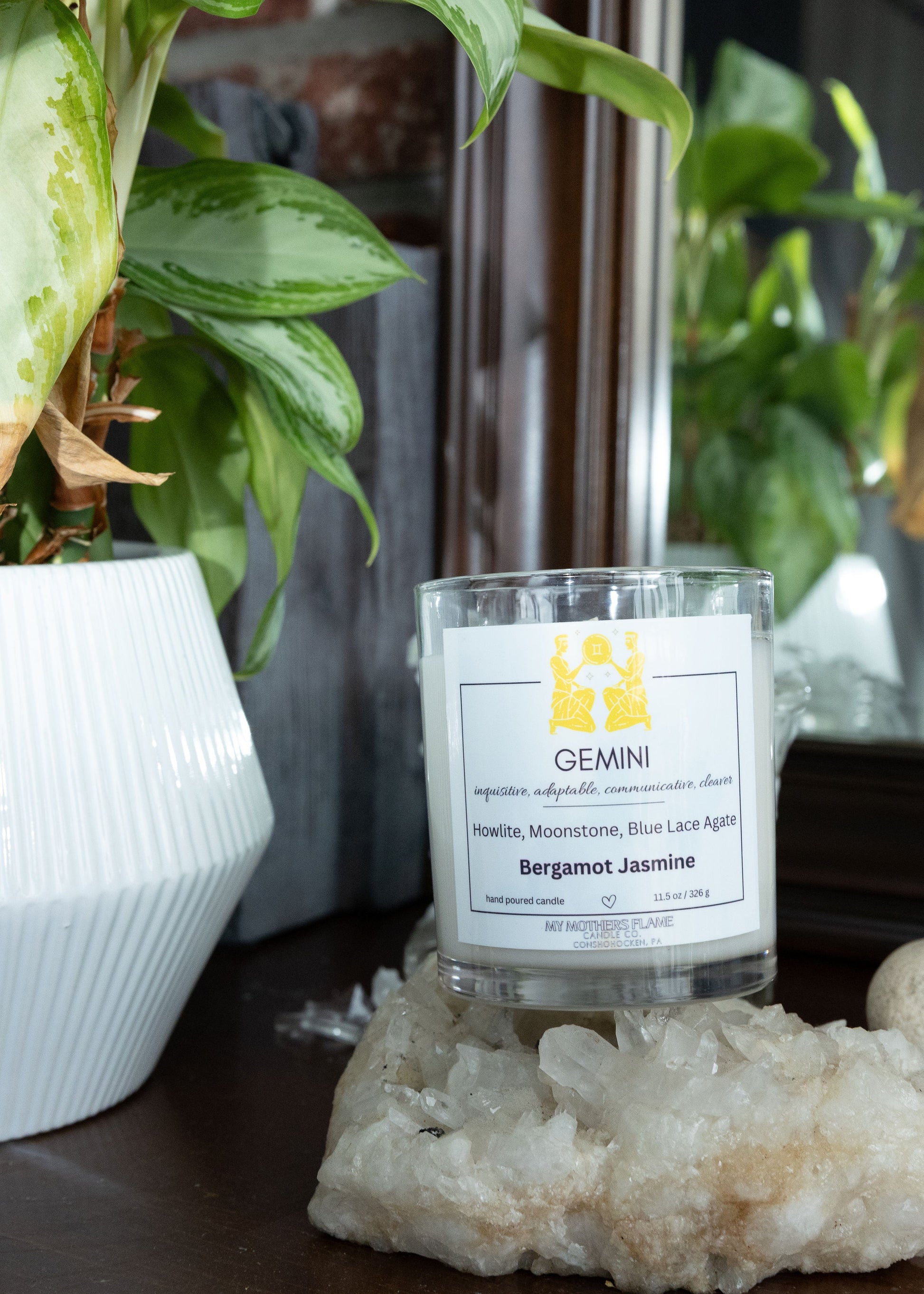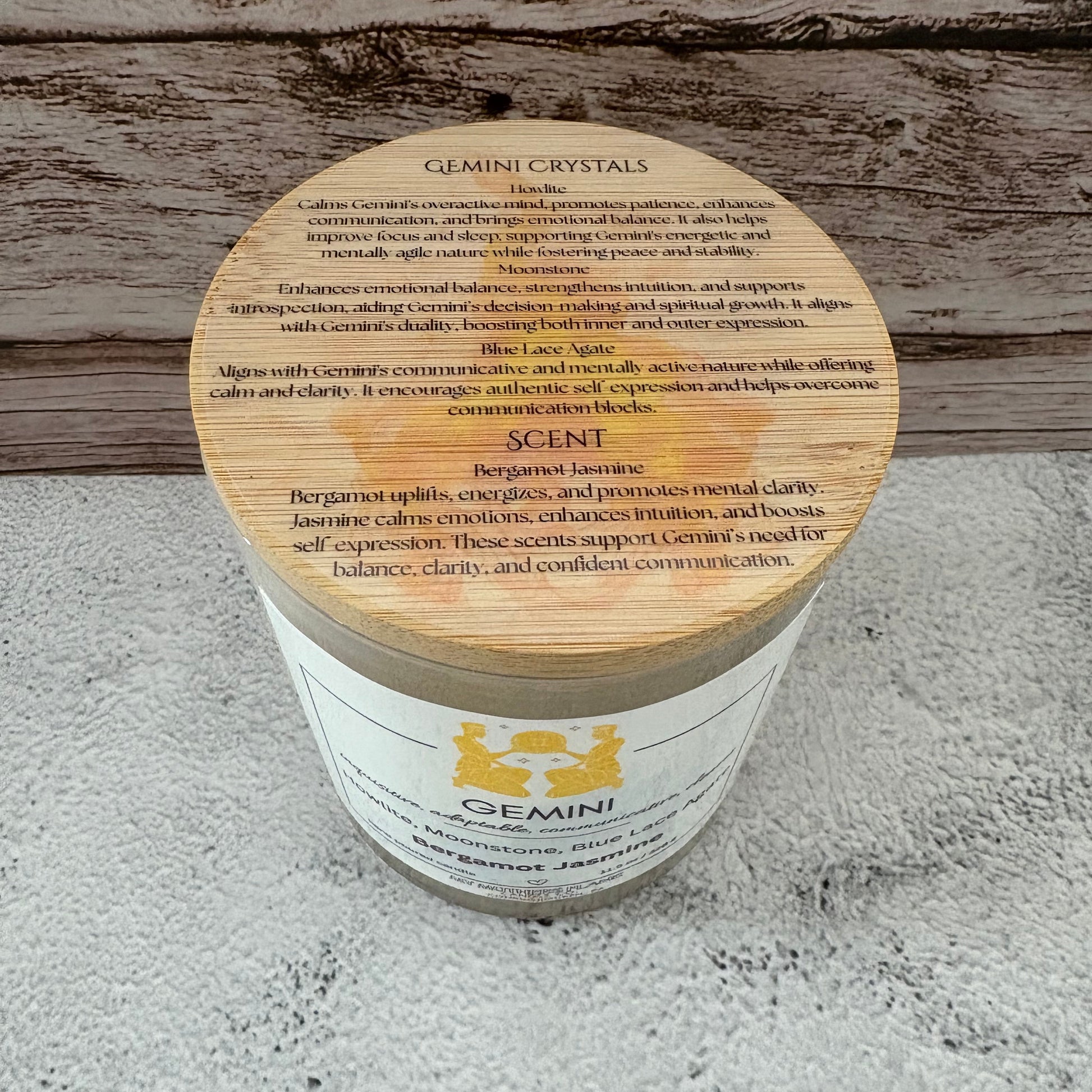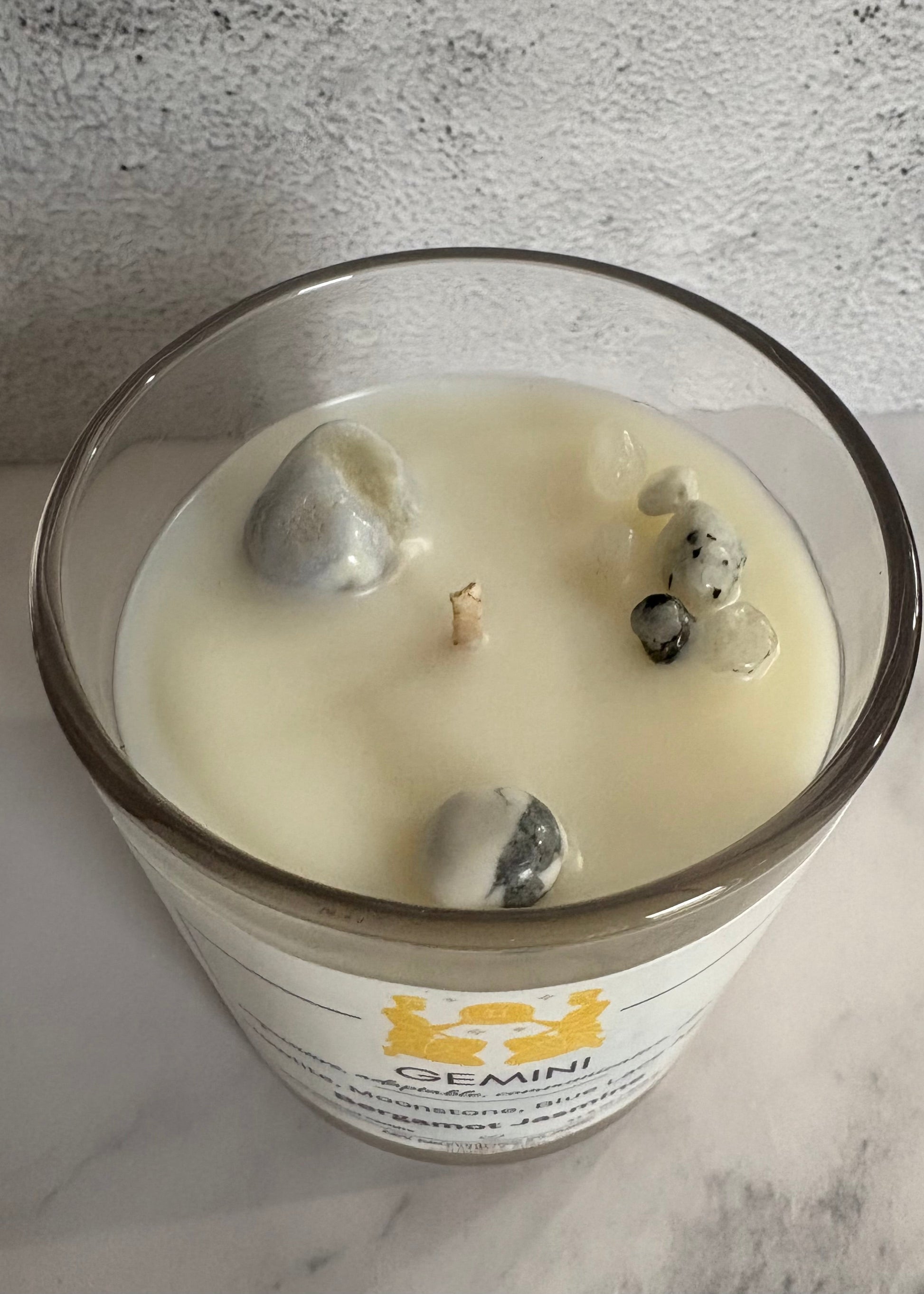 Our Gemini Zodiac Candle is infused with invigorating crystals and a vibrant scent blend crafted to awaken your spirit, restore harmony, and spark positive energy. This candle is designed to mirror the dynamic and adaptable nature of Gemini, helping to inspire creativity and mental clarity.