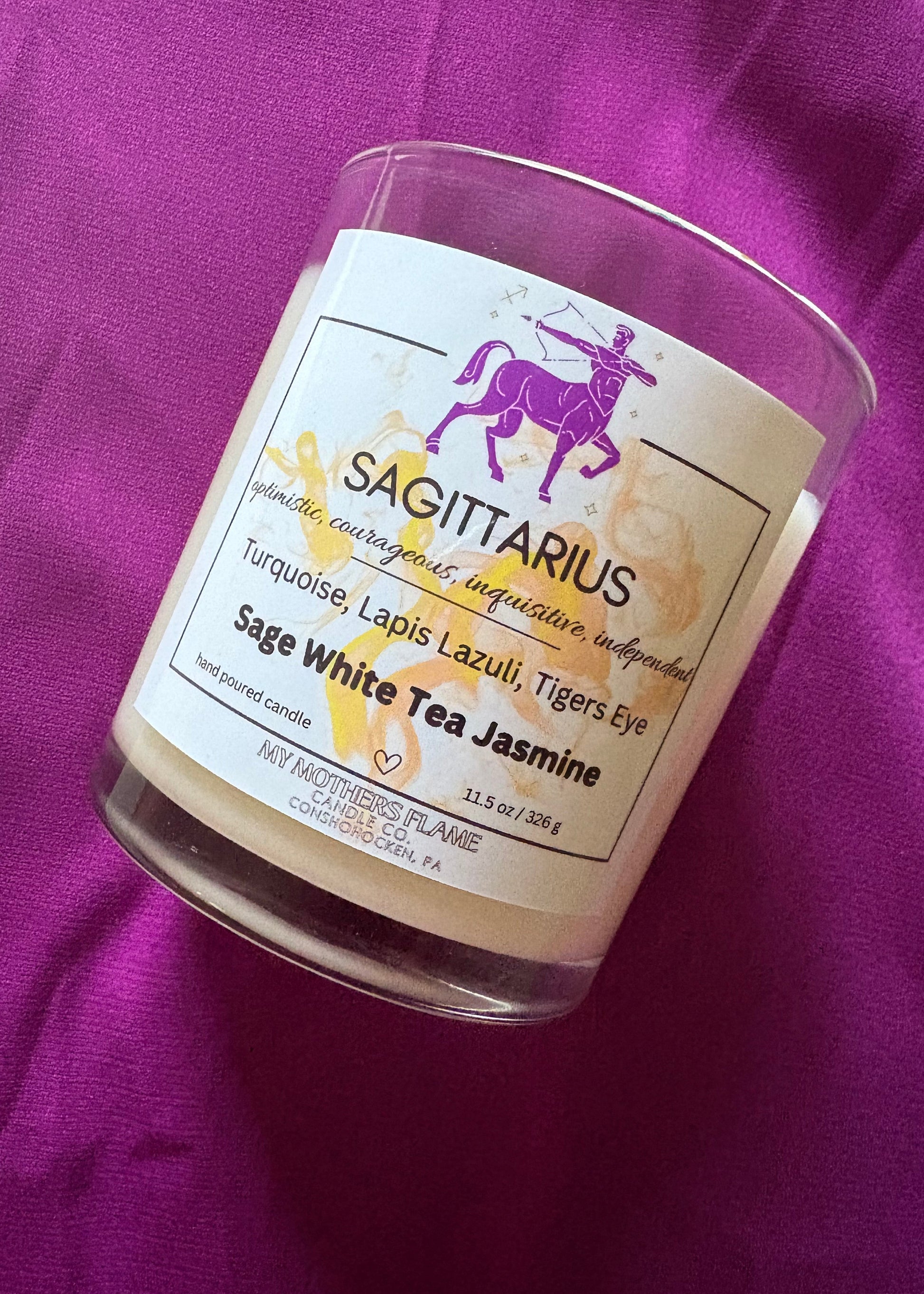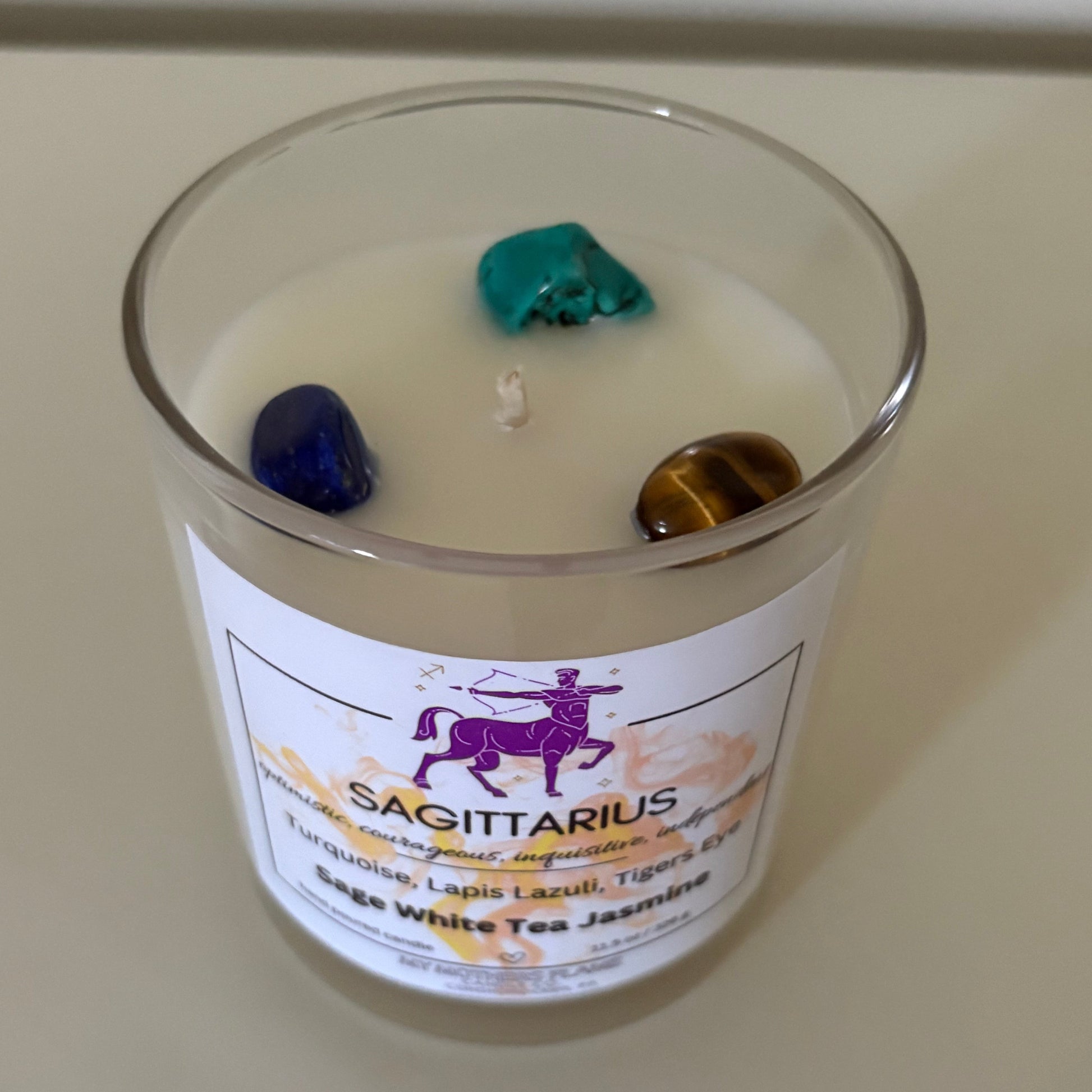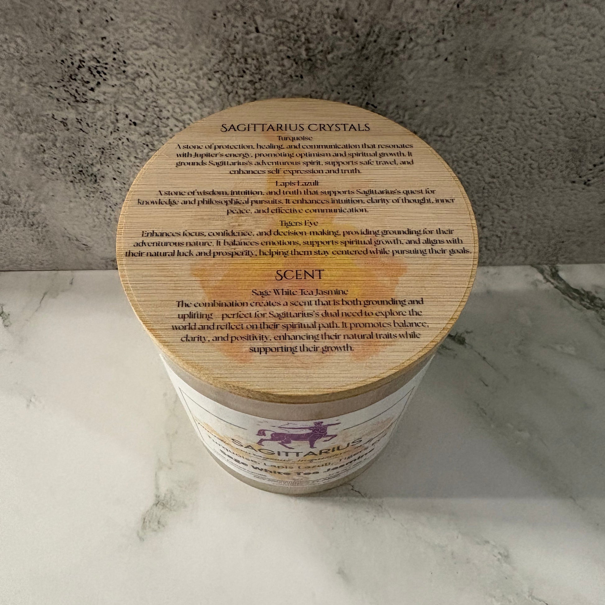 Our Sagittarius Zodiac Candle is infused with adventurous crystals and an uplifting, invigorating scent blend. Crafted to embody Sagittarius’s free-spirited, optimistic, and wisdom-seeking nature, this candle inspires exploration, truth, and boundless joy.