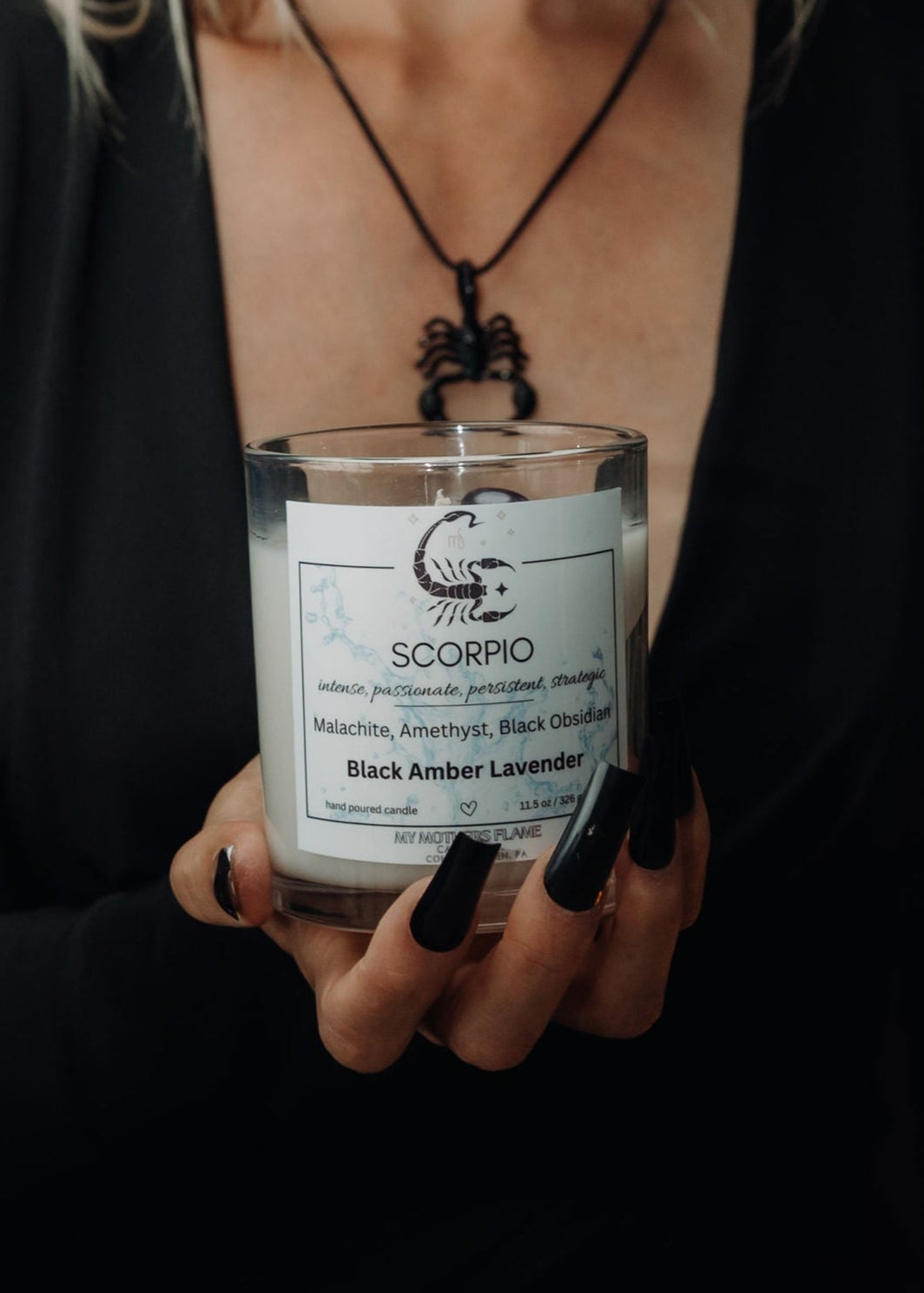 Our Scorpio Zodiac Candle is infused with intense crystals and a deep, alluring scent blend. Crafted to capture Scorpio’s mysterious, passionate, and transformative energy, this candle empowers emotional depth, resilience, and inner strength.