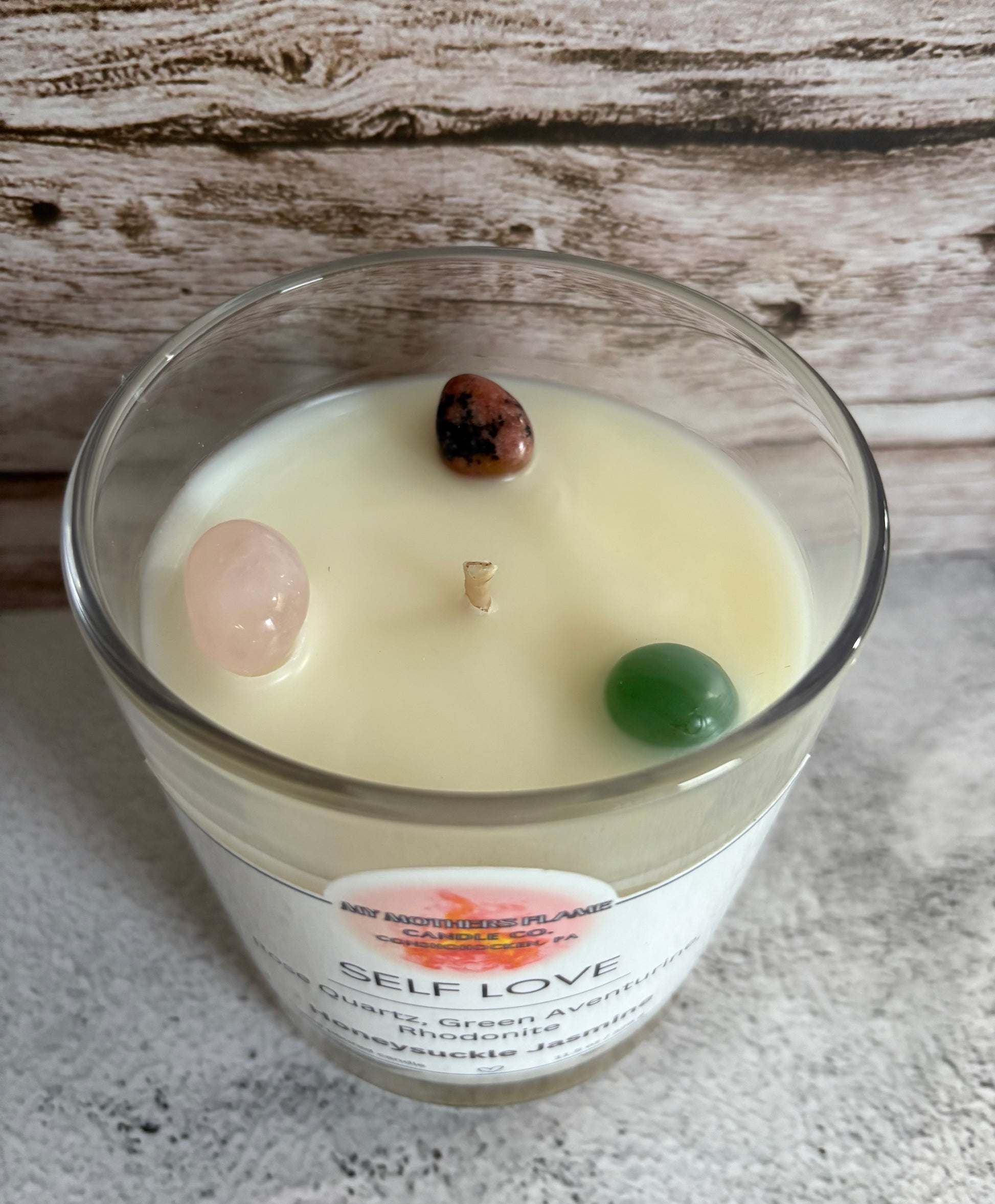 Our Self Love Candle blends thoughtfully selected crystals and scents to curate a nurturing, empowering experience for your mind, body, and soul. Love yourself!