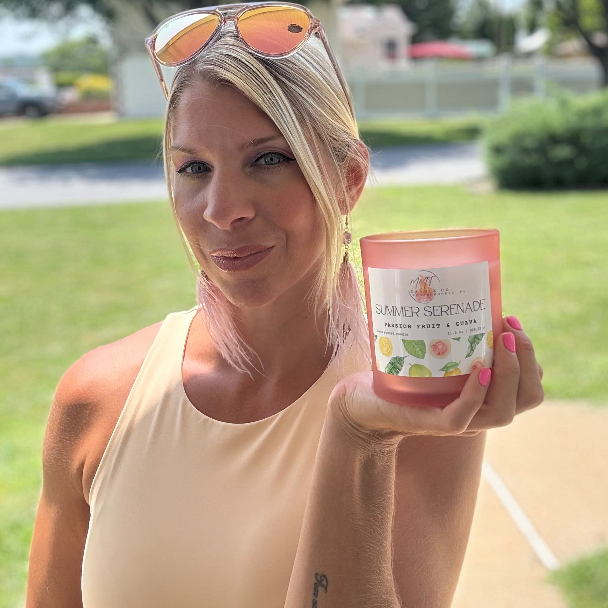Introducing Summer Serenade, our hand-poured candle crafted from a premium para-soy wax blend. Infused with the tropical, vibrant scent of passion fruit and guava, this fragrance captures the essence of a sunny paradise, filling your space with a refreshing, exotic breeze.