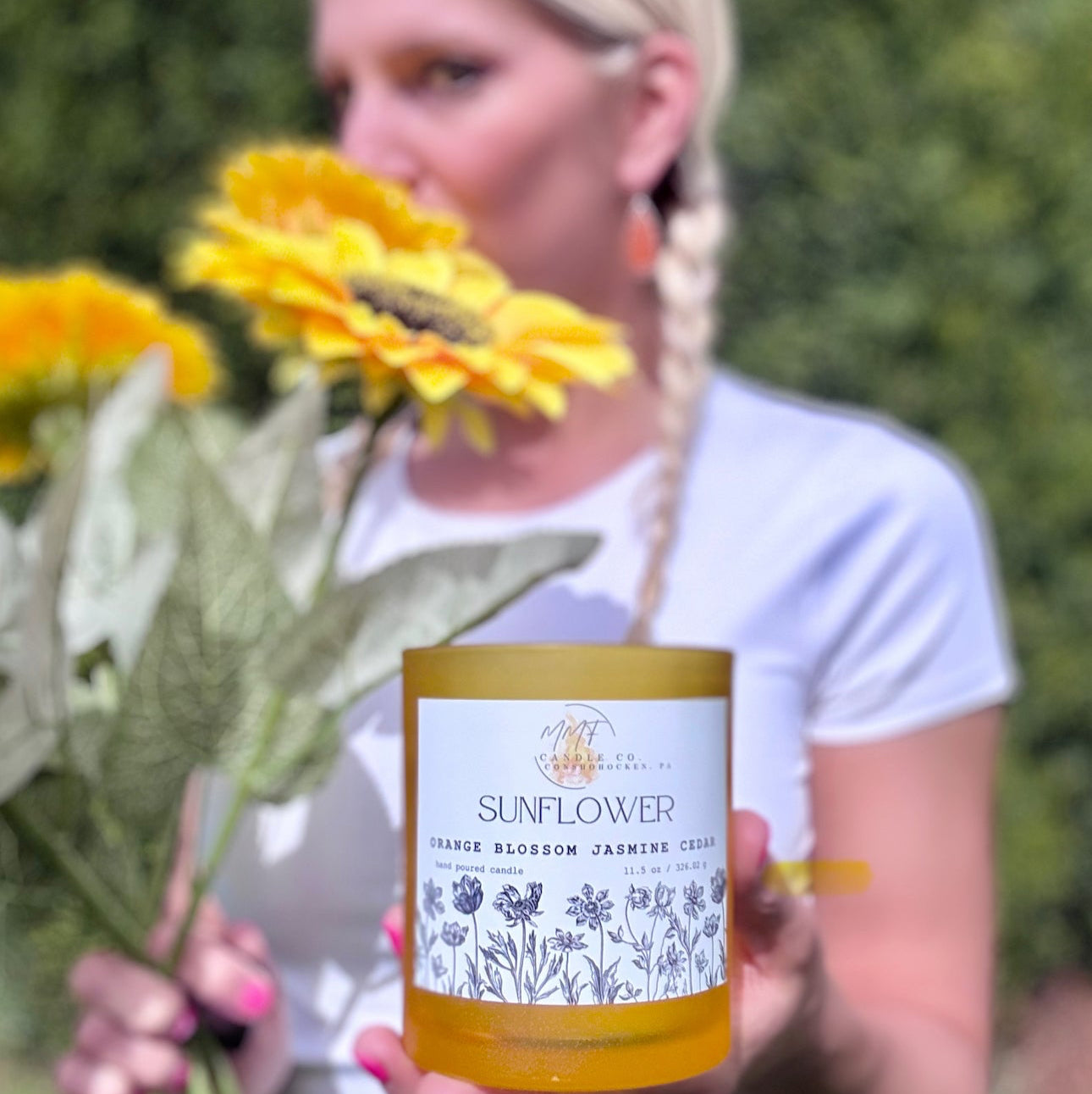 Introducing Sunflower, our hand-poured candle made from a premium para-soy wax blend. Infused with the bright, uplifting scent of sunflowers, this fragrance brings the warmth and beauty of a sun-drenched meadow into your space.