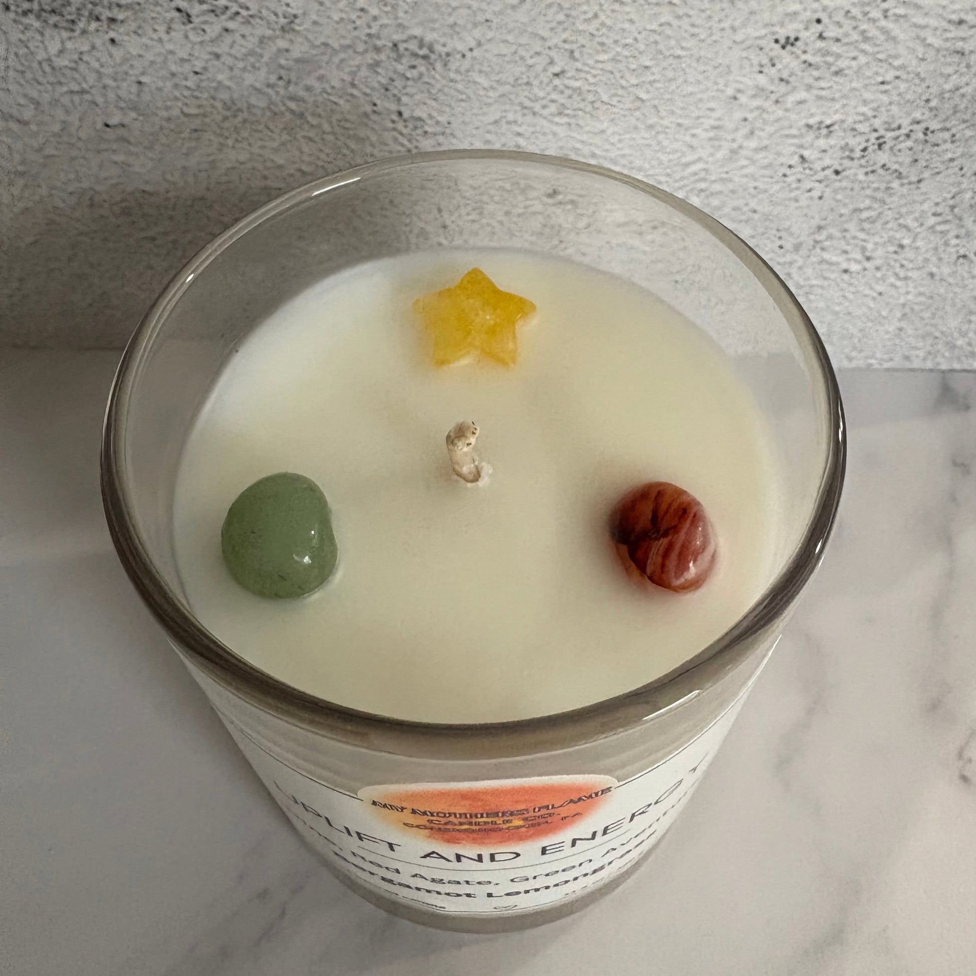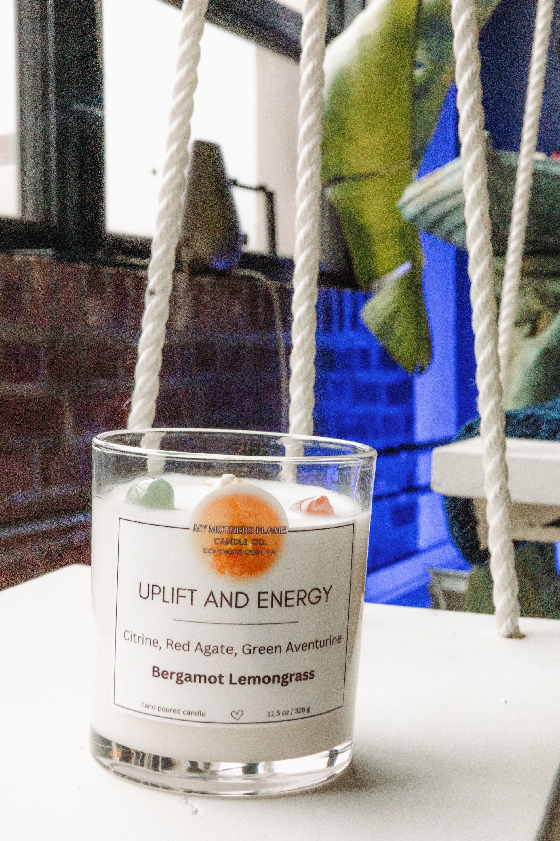 Our Uplift and Energy Candle is infused with energizing crystals and an invigorating scent blend. Crafted to revitalize your spirit, restore balance, and inspire positive energy.